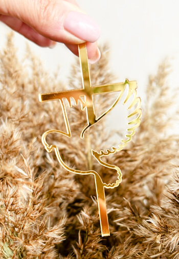 Jeśli masz potrzebę użycia krzyżyka jako toppera bez problemu możesz go wbić w ciasto lub dokleić patyczek szaszłykowy klejem na gorąco.