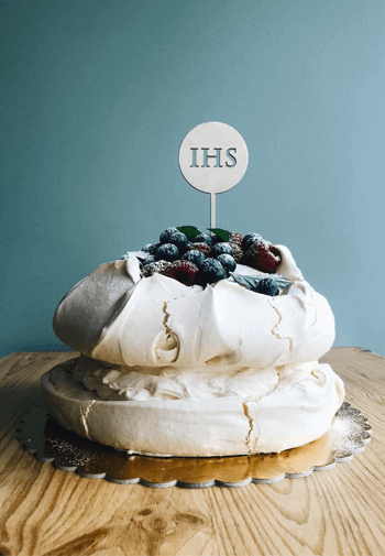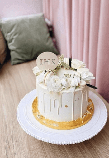 Drewniane kółko z ażurowym, precyzyjnie wyciętym napisem IHS.