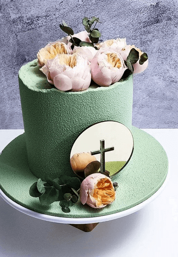 Okrągła dekoracja w formie koła z wyciętym (ażurowym) krzyżykiem. Nada się na komunie jak i chrzciny.