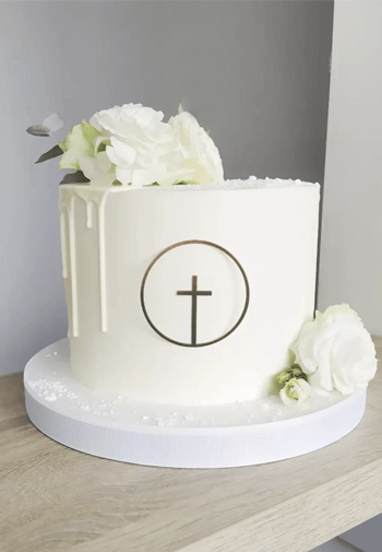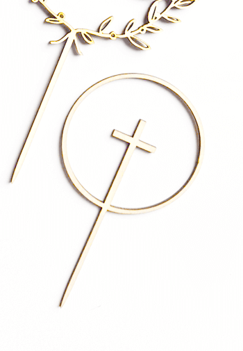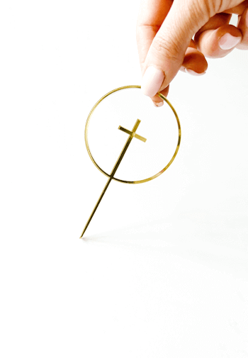Delikatna dekoracja w formie obręczy z krzyżykiem.